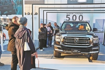 r中国品牌汽车吸引不少参观者驻足。 本报中东中心分社 伊纳斯·易卜拉欣摄